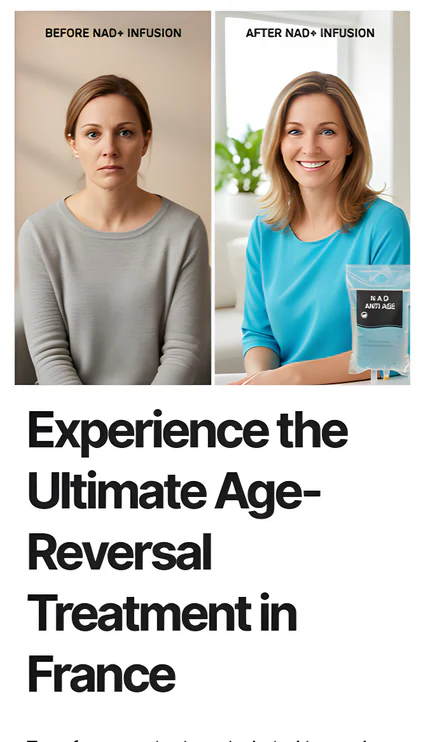 Discover our premier NAD+ infusion services in France, offering personalized IV therapy to boost energy, enhance mental clarity, and promote anti-aging. Experience revitalizing treatments tailored to your wellness goals, administered by expert professionals .