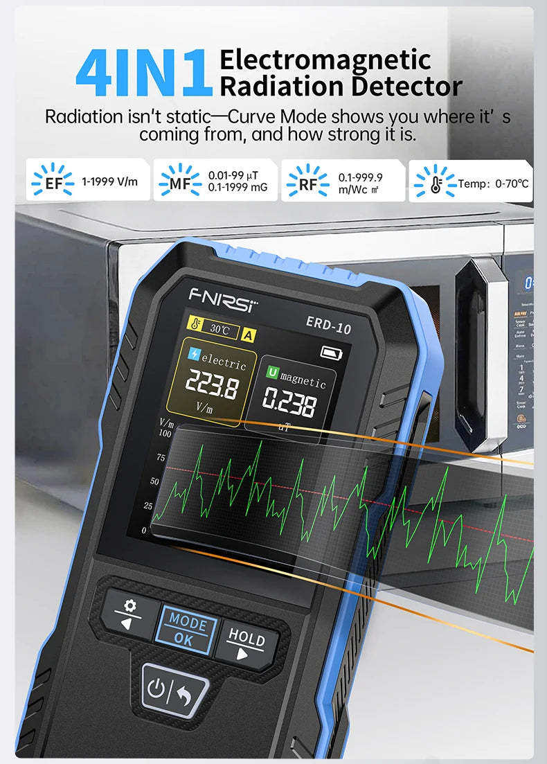 In the pursuit of true longevity, invisible threats lurk in every modern home—EMFs from WiFi routers, smart devices, power lines, and cell towers that may disrupt sleep, accelerate oxidative stress, and hinder cellular repair. Empower your longevity lifestyle with the FNIRSI ERD-10, your precision guardian for detecting and minimizing electromagnetic pollution.